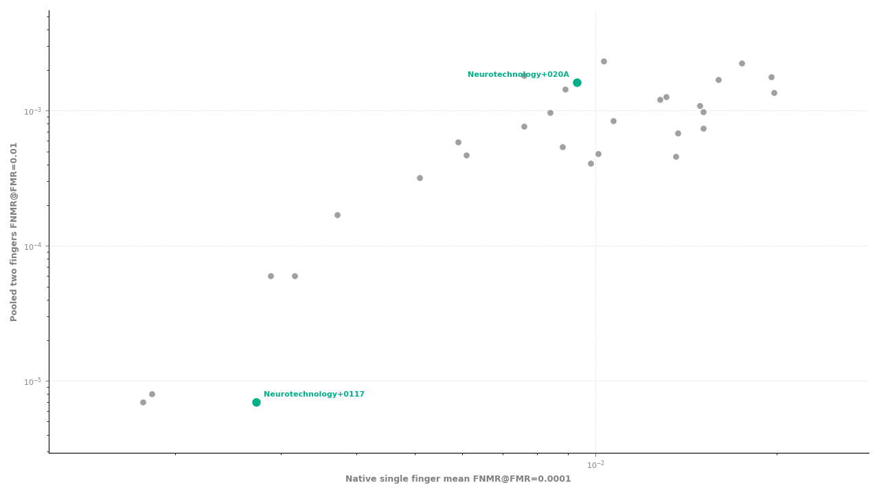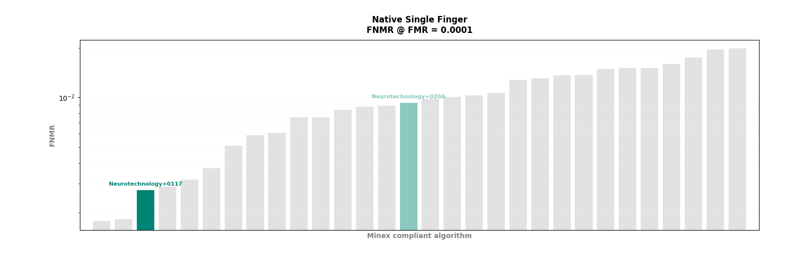 The Neurotechnology+0117 submission represents the most recent Neurotechnology's fingerprint template recognition algorithms designed for use in solutions based on PC or mobile platforms. The submission successfully passed the MINEX III validation in March 2026. The outstanding interoperability results for Neurotechnology's latest fingerprint template generation technology, as well as the top-ranked interoperability and native accuracy results for fingerprint recognition (generator and matcher) software, easily exceed any previous MINEX III submission.